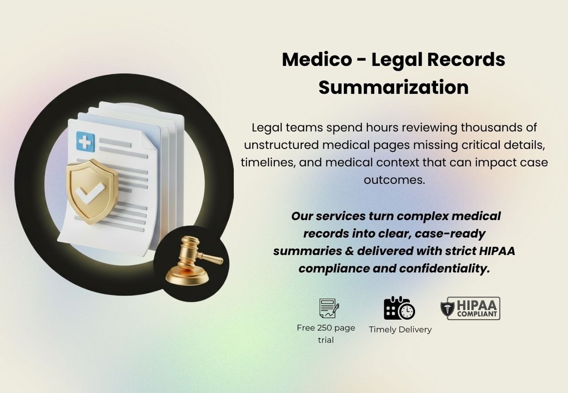 We support legal professionals, insurance teams, and medical experts with accurate, timely, and secure medical record summarization services. Our customized solutions are designed to streamline case review, enhance outcomes, and reduce overall time and cost burdens.