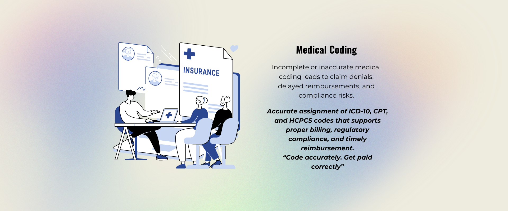 We deliver reliable and regulation-compliant medical coding services in accordance with ICD, CPT, and HCPCS standards. Our skilled coders focus on accuracy and consistency to minimize errors, streamline claims processing, and enhance the quality and efficiency of healthcare documentation for our clients.