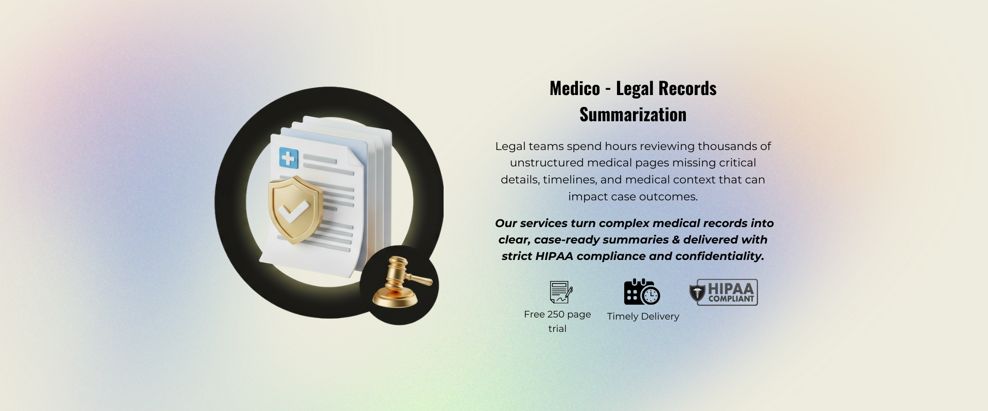 We support legal professionals, insurance teams, and medical experts with accurate, timely, and secure medical record summarization services. Our customized solutions are designed to streamline case review, enhance outcomes, and reduce overall time and cost burdens.